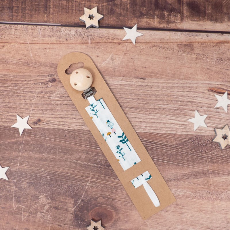 Composition : Coton à motifs 100% Coton Oeko Tex. Clip rond 100% bois d'érable brut, naturel, sans vernis avec fixation en acier et de fabrication européenne. Clip conforme à la norme EN 12586.