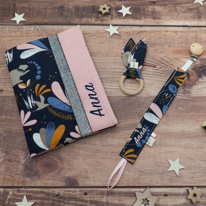 Vous avez la possibilité de personnaliser cette attache tétine avec le prénom de l'enfant pour 5€ supplémentaires. Réalisé en flex (flocage). Exemple du rendu en photo "Julia".