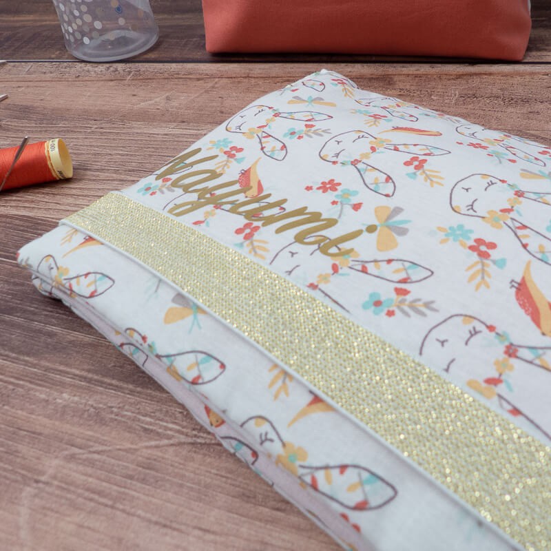 Et cerise sur le gâteau, elle est bien sur personnalisable avec le prénom de l'enfant (+5€) qui sera inscrit en flocage sur le devant de la pochette. Exemple : "Nayumi".