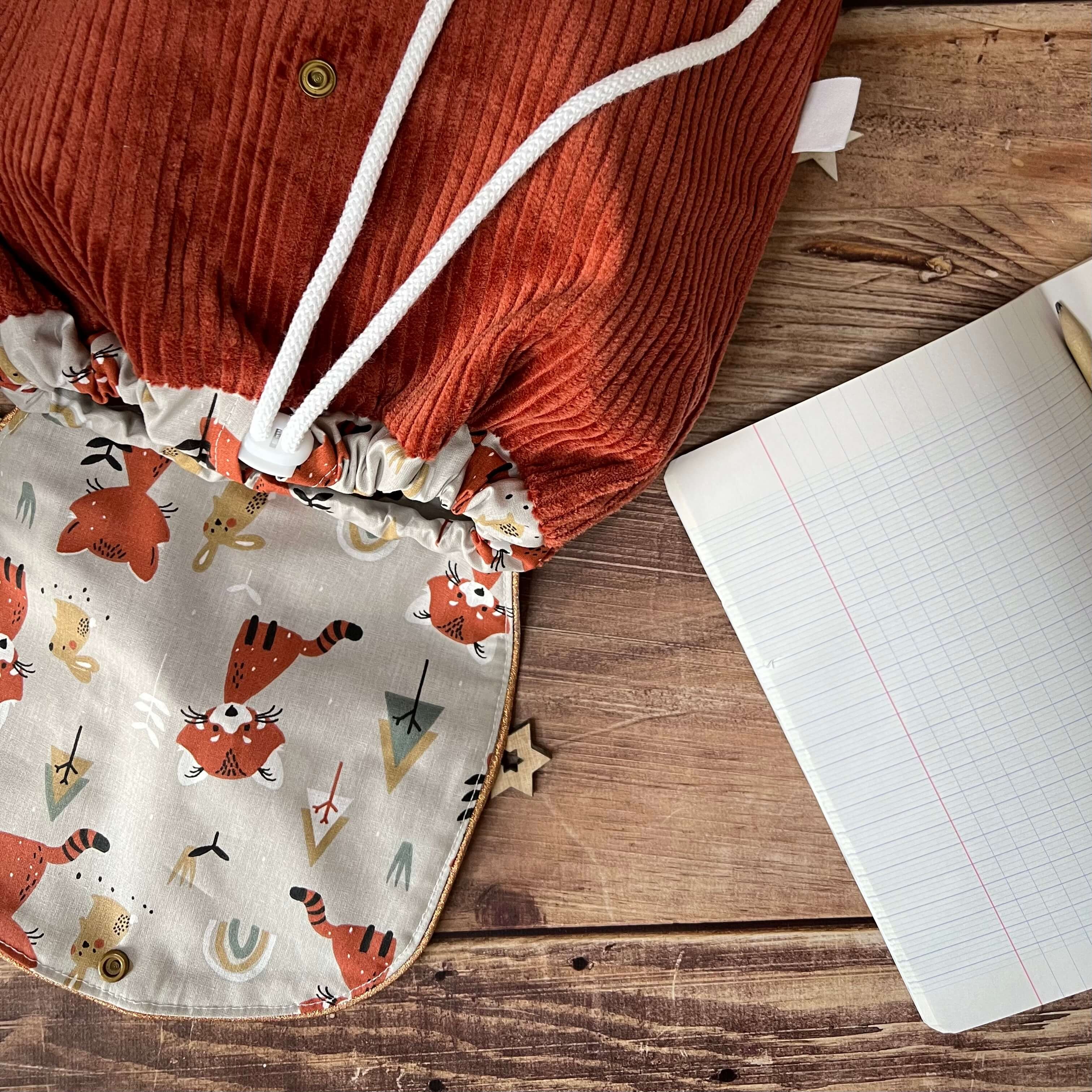 Rien de plus facile ! Choisi le velours extérieur, le coton motifs de la doublure, la broderie du prénom (+5€) ou non avec la police de ton choix et voilà c’est fini ! Je le réalise pour toi sur commande et sur mesure.